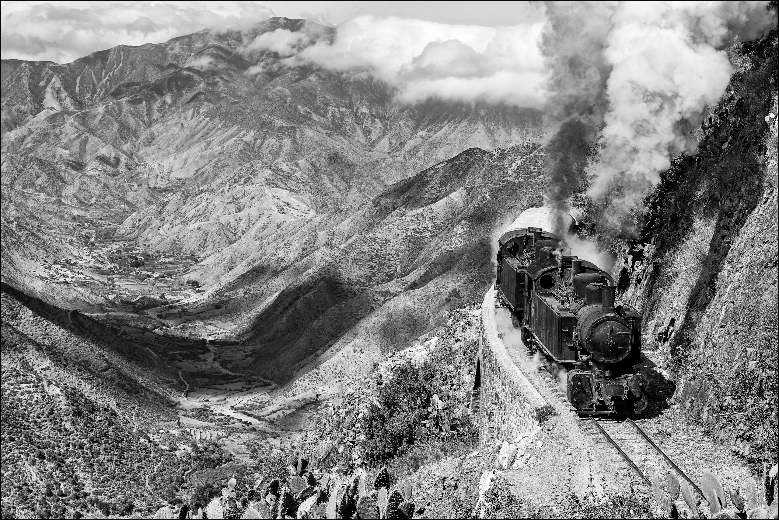 • High Above – Engines 442.55 and 56 above Python valley heading for the Shegerini road overpass, Eritrea, 18.01.2019