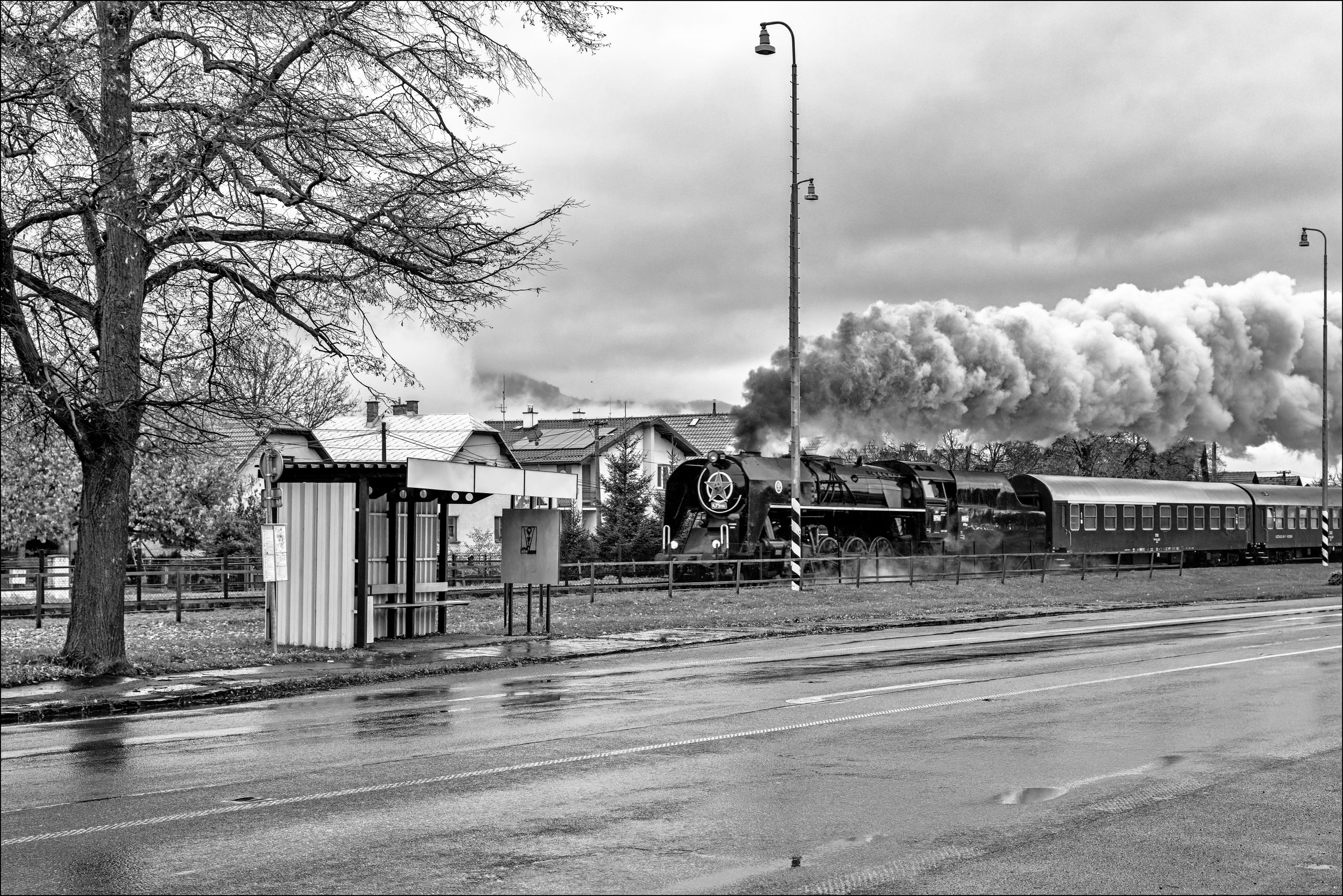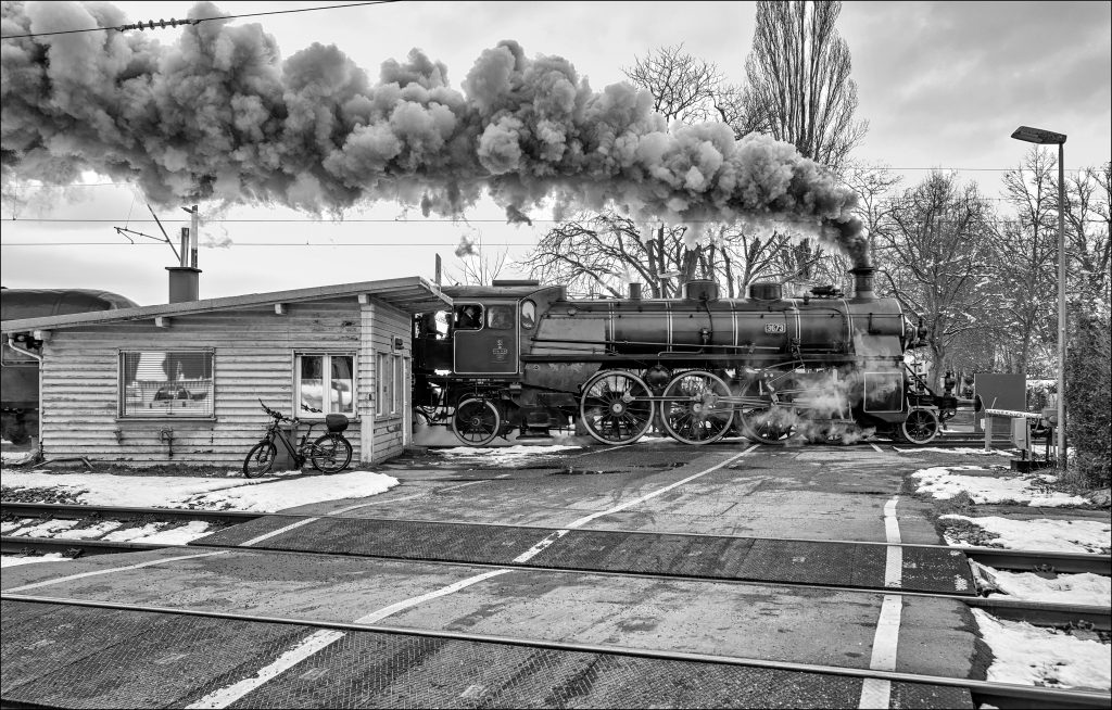 The iconic Forth Bridge (1890) was just crossed by engine A1 60163 ‚Tornado‘ (2008), South Queensferry, Scotland, Great Britain. 02.05.2025Engine 475.196 (Skoda, 1950/2519) at Kostany nad Turcom, Zilinsky kraj, Slovakia. 26.10.2025Engine 475.196 (Skoda, 1950/2519) is climbing into the Kremnica mountains. Horna Stubna, Slovakia. 26.10.2025Engine 475.196 (Skoda, 1950/2519) is heavily pulling in to the station of Bartosova Lehotka, Banskobystricky kraj, Slovakia. 26.10.2025Behind the cottage engine 93.1332 (WLF Floridsdorf, 1927/2935) crosses a tributary creek of the Rosenbach at Tallach on the Rosentalbahn. Kärnten, Austria. 18.10.2025The morning dew still rests on the cobwebs while engine 93.1332 (WLF Floridsdorf, 1927/2935) on the Rosentalbahn passes a courtyard where a bicycle seems to be the most usable item. Laiplach, Kärnten, Austria. 17.10.2025Between Earth and Sky – Engine 657.2770 pulls its train uphill above Retz and under a deep sky, Niederösterreich, Österreich. 16.10.2025The Challange – It is always a challenge for train crews to pull out of a station directly onto a gradient, as is the case here with engine 657.2770. Retz, Niederösterreich, Austria. 16.10.2025Engine 657.2770 fighting its train uphill at Retz, Niederösterreich, Austria. 16.10.2025Approach in the morning sun – The main protagonist here is locomotive 657.2770 with a train of open cars. Retz, Niederösterreich, Austria. 16.10.2025Morning Mist – Against the backdrop of the church in Unterretzbach, locomotive 657.2770 struggles uphill with a train of open trucks as the sun absorbs the last of the morning mist. Niederösterreich, Austria. 16.10.2025From a bygone era: wayside shrines, orchards, steam – Engine 657.2770 at Pleissing, Niederösterreich, Austria. 16.10.2025Crossing the tracks is prohibited – Engine 657.2770 is passing an old prohibition sign at Fladnitz, Niederösterreich, Austria. 16.10.2025Caretaker – Lubricating engine 657.2770 at Fladnitz, Niederösterreich, Austria. 16.10.2025Above Town – Engine 92.2771 (Dn2vt, Krauss/Linz, 1919/7327) is a rare survivor of the two cylinder compound design. Here above Zwettl, Niederösterreich, Austria. 12.10.2025Over the Roof – Engine 92.2771 (Dn2vt, Krauss/Linz, 1919/7327) is a rare survivor of the two cylinder compound design, which was the way to increas thermal efficency before superheater were introduced. Zwettl, Niederösterreich, Austria. 12.10.2025Engine 92.2771 (Dn2vt, Krauss/Linz, 1919/7327) is a rare survivor of the two cylinder compound design. A closer look reveals the bigger low preasure cylinder on the left side of the engine. Near Ganz, Niederösterreich, Austria. 12.10.2025Engine U 25 (St.E.G., 1902/2998) of Bregenzer Waldbahn passing the Vorsäß Stiegeln near Bezau, Vorarlberg, Austria. 21.09.2025. The U 25 towed the inaugural train of the Bregenzer Waldbahn in 1902. A ‚Vorsäß‘ is the spring and autumn location for the pastoral farming in Vorarlberg, which follows the vegetation up- and downhill during the course of the year. In the Rocks – Engine 4 (HG 3/4, SLM, 1913/2138) is crossing the bridge over the young river Rhone to enter the circular tunnel towards Gletsch, Wallis, Switzerland. 14.09.2025Engine 4 (HG 3/4, SLM, 1913/2138) has left the circular tunnel in between the turn of the mountain road to shortly arrive at, Wallis, Switzerland. 14.09.2025Uphill – Engine 7 (SLM; 1873/1) of the Goldau-Rigi rack railway (System Riggenbach) is with its standing boiler a very unusual steam locomotive design, but typical for the time, where experience still to be gained. Here it is heading for its destination on top of the Rigi mountain, visible in the upper left of the image. Goldau, Schwyz, Switzerland. 13.09.2025On its second but last day of the current inspection period the Bavarian S3/6 3673 (Maffei, 1918/4536) is crossing the Mittlerer Ring at S-Bahn station „Heimeranplatz“ in Munich. The town where she was built more than 100 years ago. Bavaria, Germany. 15.08.2025Still here – a new roundabout incorporates through its centre the track of the Öchsle Museumsschmalspurbahn and is crossed by engine 99 633 (wü. Tssd, MF Esslingen, 1899/3072) on arrival at Ochsenhausen, Baden-Württemberg, Germany. 19.07.2025Work for Steam – on engine 99 633 (wü. Tssd, MF Esslingen, 1899/3072) of the Öchsle Museumsschmalspurbahn, Baden-Württemberg, Germany. 19.07.2025Engine 99 633 (wü. Tssd, MF Esslingen, 1899/3072) of the Öchsle Museumsschmalspurbahn near Reinstetten, Baden-Württemberg, Germany. 19.07.2025Engine 99 633 (wü. Tssd, MF Esslingen, 1899/3072) of the Öchsle Museumsschmalspurbahn near Reinstetten, Baden-Württemberg, Germany. 19.07.2025Engine 99 788 (Lokomotivbau Karl Marx, 1956/132029) of the Öchsle Museumsschmalspurbahn passing Wennedach on the way to Ochsenhausen, Baden-Württemberg, Germany. 20.07.2025 Before the Picture – of a steaming engine can be taken, some have to do the hard work. For example, exchange the tubes of the boiler. Heavy, uncomfortable, dirty and yet only half the job done. Crailsheim, Baden Württemberg, Germany or anywhere else on the globe where steam engines are maintained. 07.06.2025Engine No. 1 ‚Talyllyn‘ (Fletcher, Jennings & Co. of Whitehaven, 1864/28) having left Abergynolwyn for Tywyn Wharf.Engine No. 4 ‚Edward Thomas‘ (Kerr Stuart & Co. Ltd., 1921/4047) on the Dolgoch Viaduct on the Talyllyn Railway. Dolgoch, Wales, Great Britain. 21.05.2025Spring Shadows – of still leafless trees fall on the alley between Lonvitz and Posewald, while engine 99 4801 (Henschel, 1938/24367, ex Kleinbahn des Kreises Jerichow) is passing on its way to Putbus. These kind of alleys are still common in the east of Germany. Rügen, Mecklenburg-Vorpommern, Germany. 28.03.2025Passing former glory – Still active on the railway it was built for, engine RüKB Mh 53 (Vulcan, 1925/3851) is passing halt and abandoned manor house of Posewald, Rügen, Mecklenburg-Vorpommern, Germany. 28.03.20